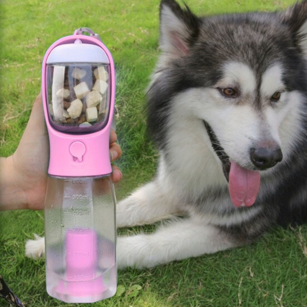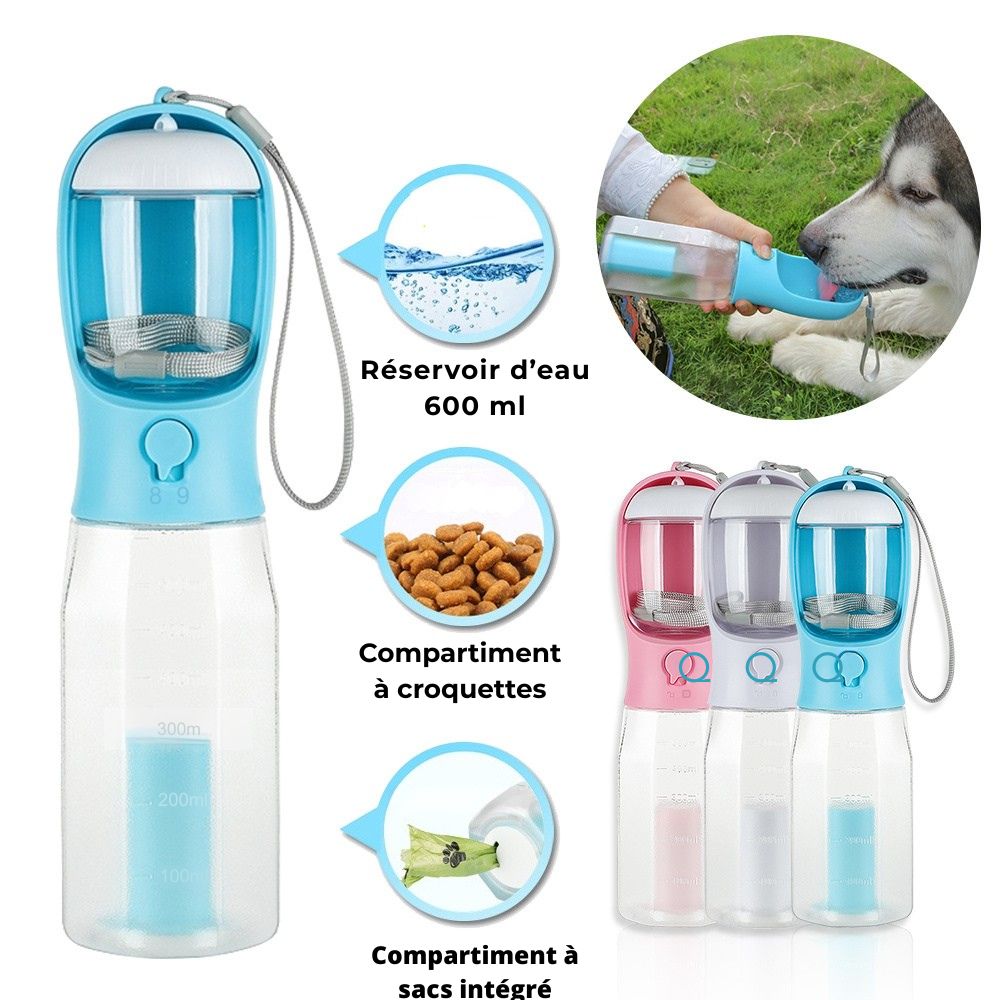 « Super pratique. Aussi bien la gourde que le pot à friandise. Hermétique, bien plus simple qu'une gamelle. Le chien boit uniquement ce qu'il souhaite sans gâchis. »